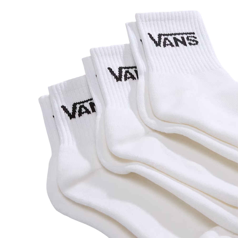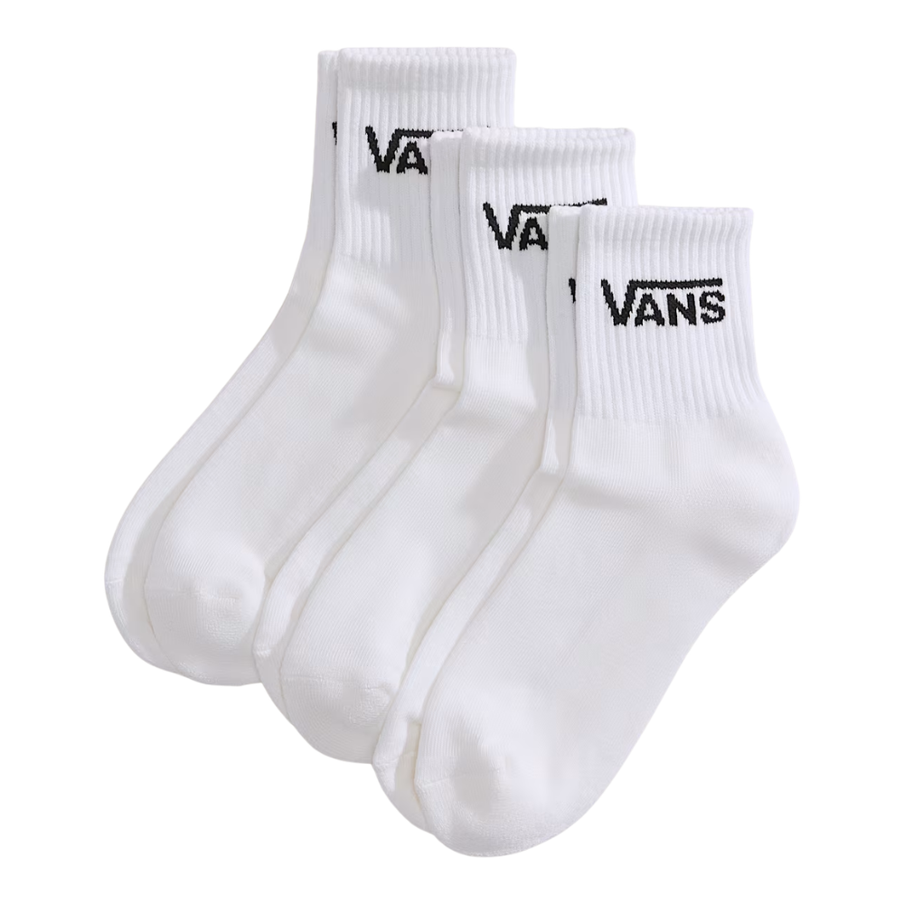 The Vans Classic Half Crew 3 Pack Socks White are the perfect mix between no-show and full crew - clean look, comfy feel and always on point. Ideal for skate sessions or just daily wear.