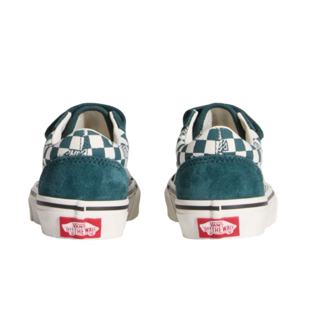 De Vans Kids Old Skool V Geo Check/Mystic Moss is een speelse take op de classic Old Skool, met een opvallende geo check print en easy velcro straps. Perfect voor jonge skaters die stijl en comfort willen combineren.